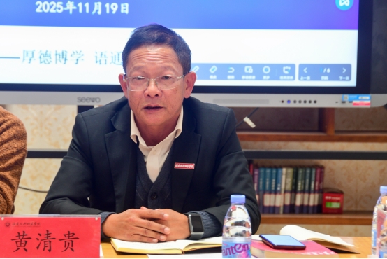 黄清贵对同学们的读书分享发言给予肯定,提出阅读时应延续“文史互融”核心思路,强调解析文学作品应坚持“史为经、文为纬”,打破学科壁垒;探讨文明议题需借经典作品拓展“士大夫”视角,深入把握文化延续逻辑。围绕治学方法、学业修习与价值引领三大维度,黄清贵倡导“自觉与突破”,推动“听说读写译”体系化训练,同时深耕根基、坚守初心,实现能力进阶。他更寄语学子超越功利导向,以“为人类福祉”为求学底色,践行“一以贯之”与“格物致知”的治学精神,树立“先觉觉后觉”的责任意识。他还围绕下一期阅读书目——《中国震撼》和《The Problem of China》,展开启发式阅读引导。