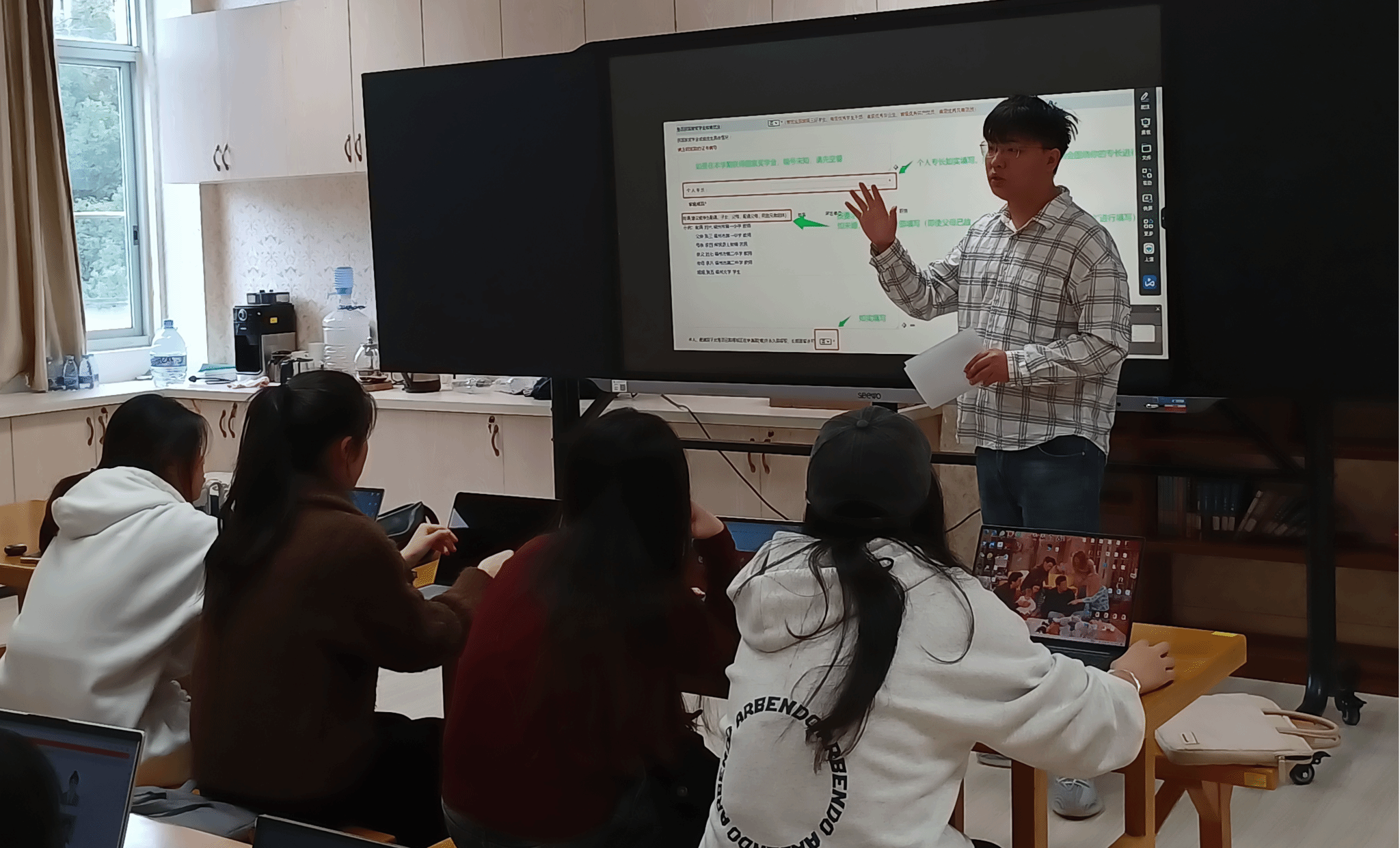 在交流讨论环节,两位辅导员对同学们提出的问题进行详细解答,并结合自身经验分享了考公笔试和结构化面试的经验技巧和注意事项,鼓励同学们有目的性、有规律性地复习,积极备考。