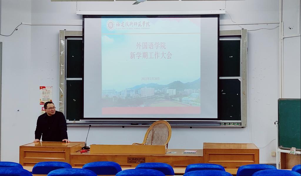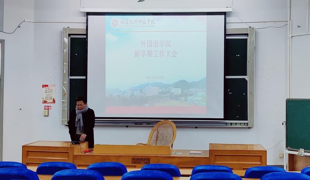 2月20日下午,我院于教学楼201召开新学期工作部署大会。会议由学院党委书记林钦松主持,院长黄清贵、副院长郑静、肖晶及我院全体教职员工参加了此次会议。