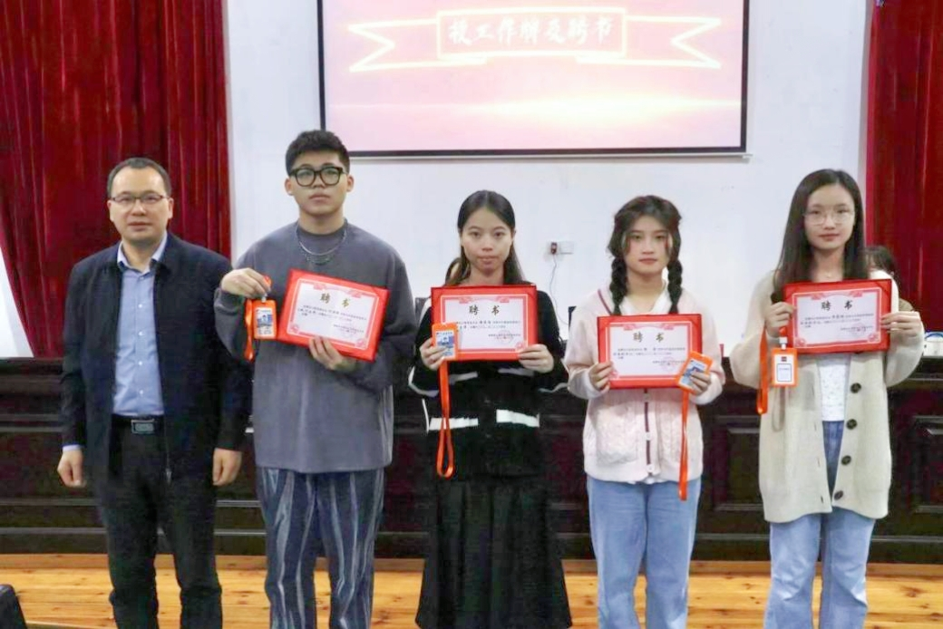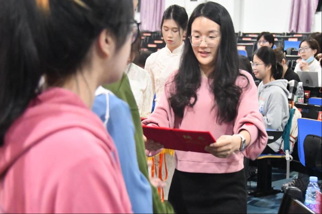 院党委书记林钦松、院团委副书记邱惠珊、院第三党支部书记林燕菲等老师分别为新一届学生两委干部发放了聘书和工作牌。