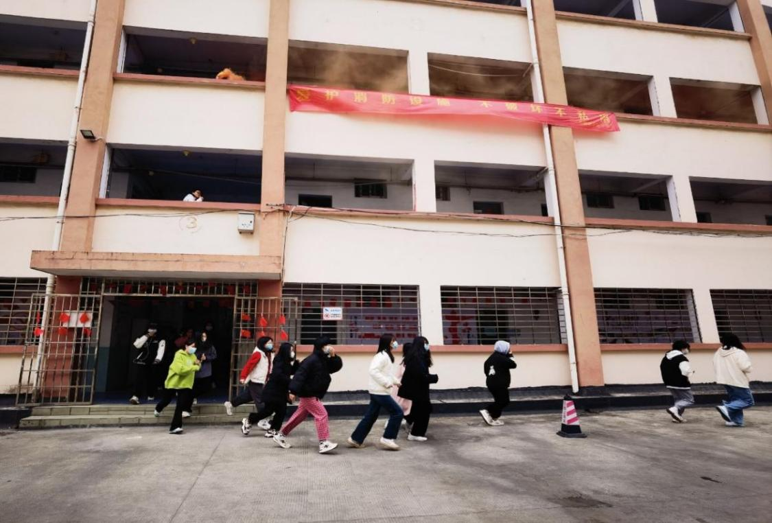 演练中,随着警报声响起,参加演练的同学们按计划从宿舍区撤离到事先指定的安全区域,整个演练过程快速、安全、有序。