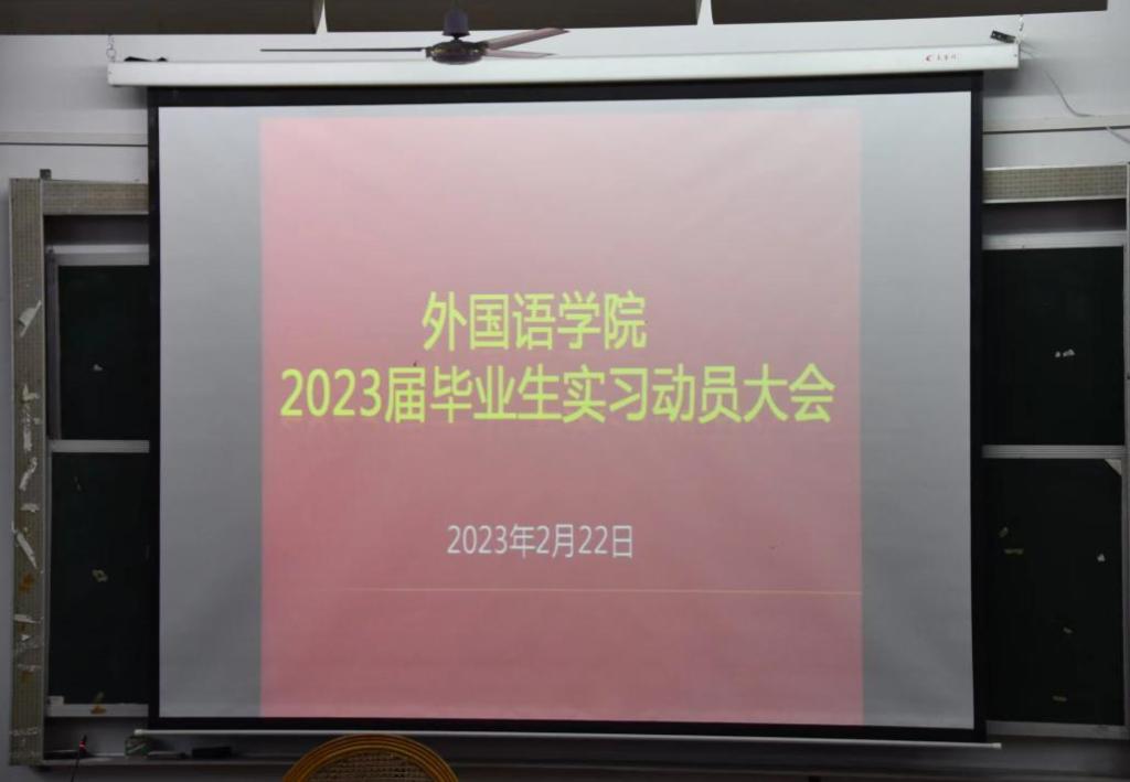 2月22日下午,我院于教学楼201召开2023届毕业生实习动员大会。会议由英语专业主任胡永祥老师主持,学院党委书记林钦松、院长黄清贵、副院长郑静、专业正副主任、毕业班辅导员和我院2023届毕业生参加了会议。