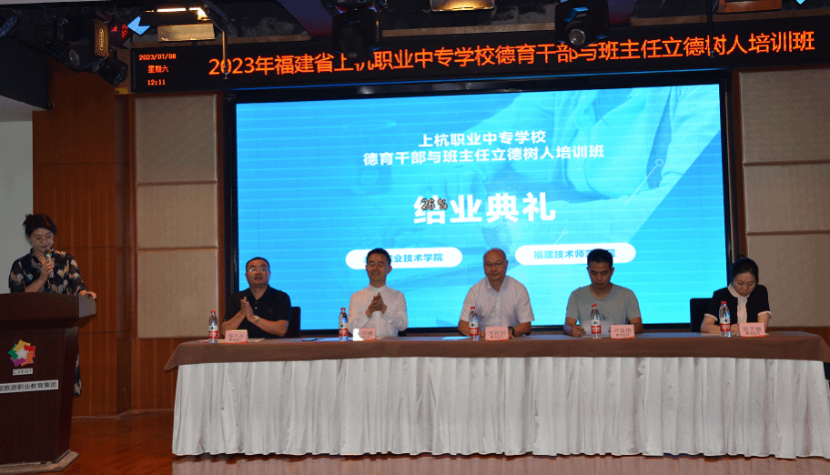 2023年7月9日,2023年福建省上杭职业中专学校德育干部与班主任立德树人培训项目圆满收官并举行结业仪式。本次培训项目由我院承办、我院与成都成职职业技能培训中心联合举办,培训时间从2023年7月3日至7月9日,来自上杭职业中专的49名德育干部与班主任参加了本次培训。