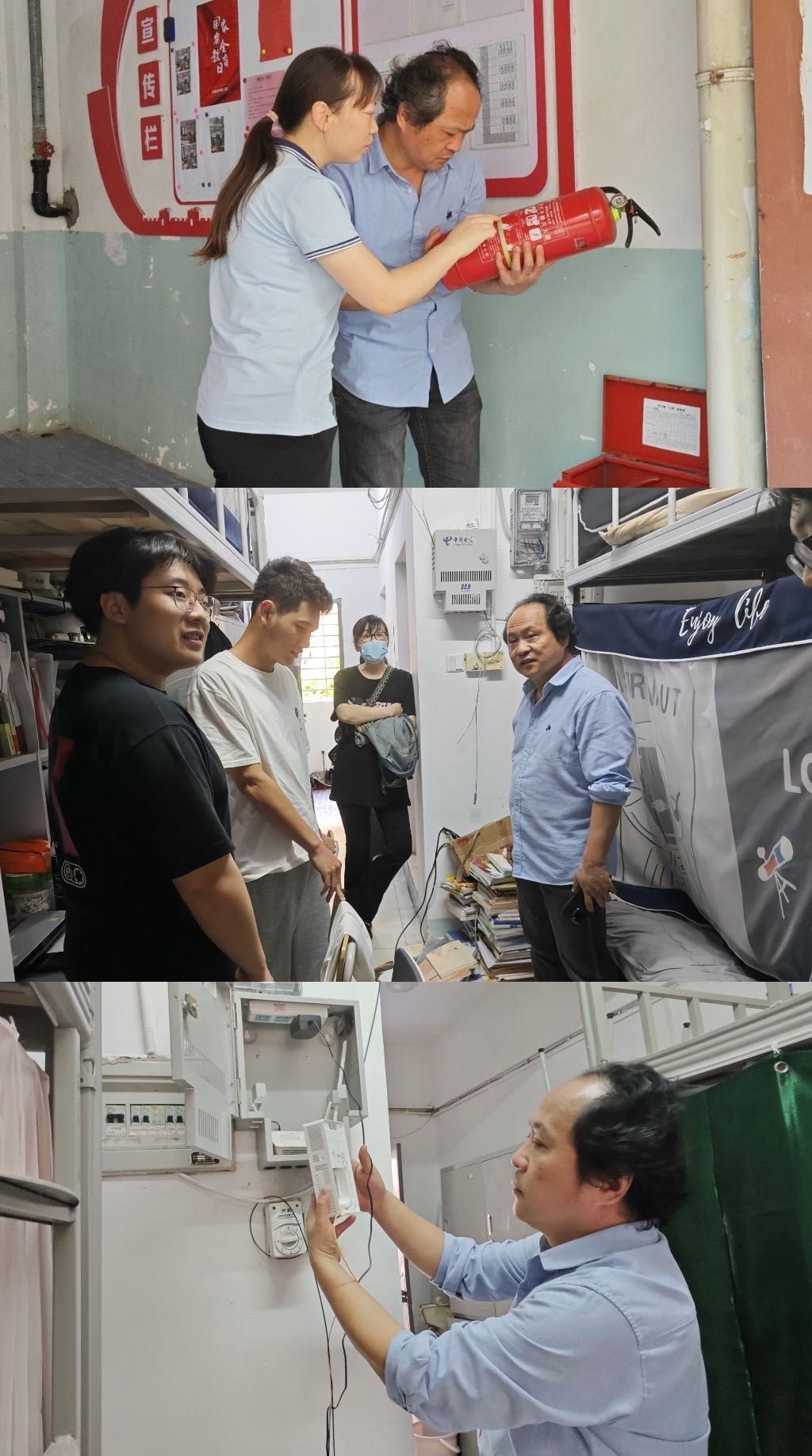 会后,院领导分头带领与会人员深入学院的办公场所、实验室、教室、学生宿舍园区等进行安全隐患排查,对可以现场整改的即知即改,无法一时整改到位的立即上报学校职能部门。