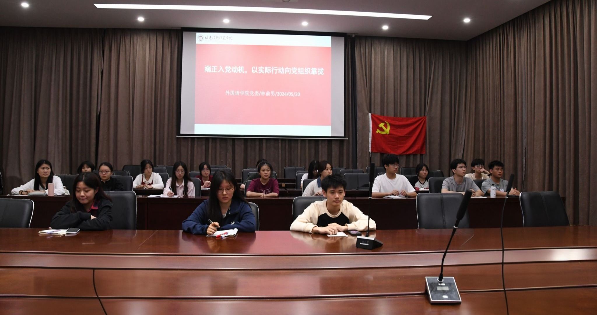 5月20日晚,我院党委书记林俞男在图书馆报告厅为我院入党积极分子讲授题为“端正入党动机,从思想上向党组织靠拢”的专题党课。