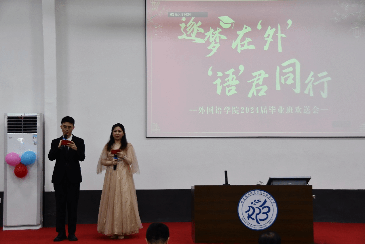 6月20日上午,我院在弘毅院报告厅隆重举办“逐梦在‘外’,‘语’君同行” 2024届毕业生欢送会。我院党委书记林俞男、院长黄清贵、副院长肖晶、办公室主任朱宇航、专业主任王慧杰、俞石明、俞丹、毕业班辅导员以及教师代表参加了活动。
