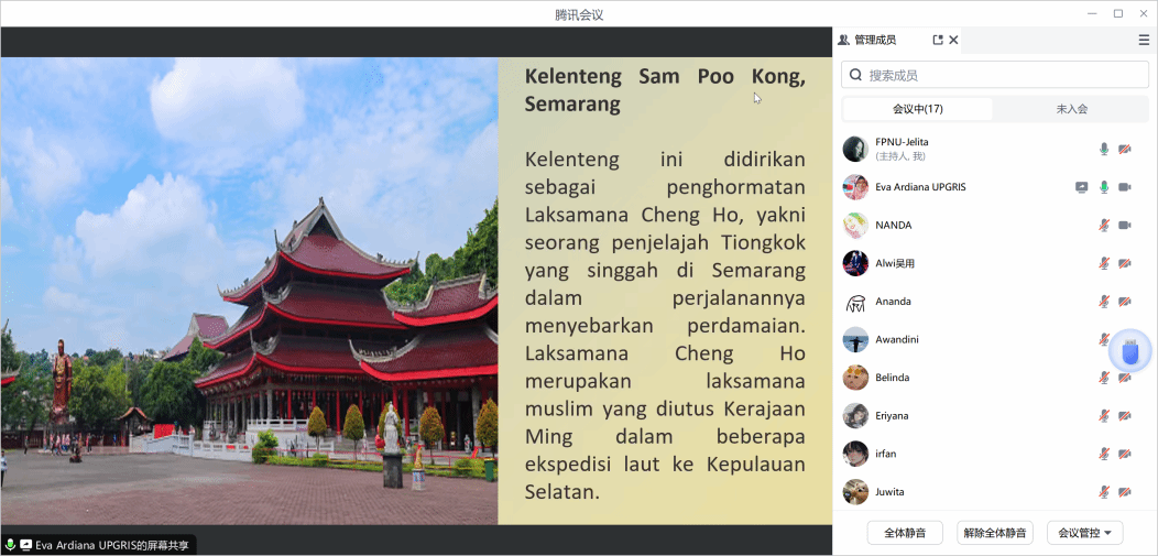 6月3日至6月21日,我院开展线上印尼语沙龙教学周活动。来自共建院校印尼三宝垄国立大学印尼语国际教育中心(BIPA)的多名教师为我院印尼语专业学生开展了8课时的线上印尼语沙龙教学活动。