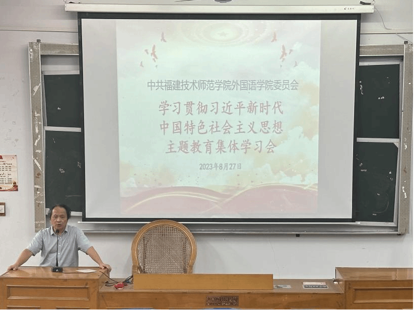 8月27日下午,我院党委在教学楼201召开学习贯彻习近平新时代中国特色社会主义思想主题教育集体学习会。学习会由院党委书记林俞男主持,全院党员干部、教职员工共同参加学习。