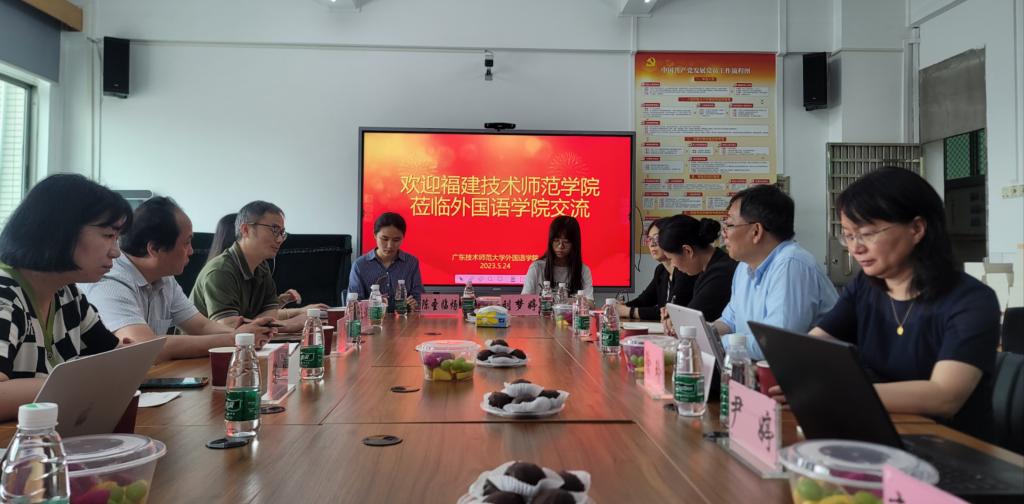 24日,学院一行来到广东技术师范学院外国语学院开展调研。该院党委书记杨伟光、院长徐玲、副院长王永建等对来访表示热烈欢迎。徐玲详细介绍了学院的发展历程、专业设置、师资队伍、学科建设以及人才培养成就,其中特别介绍了该院师范专业的培养特色、学科教学英语的硕士研究生培养情况、英语省一流专业建设情况以及实验室建设和语言服务产业学院建设情况。胡永祥、魏婷等老师先后就特色课程体系构建、师范认证、实习实训环节等议题向广师大领导做了咨询,均分别得到了耐心而详细的解答。
