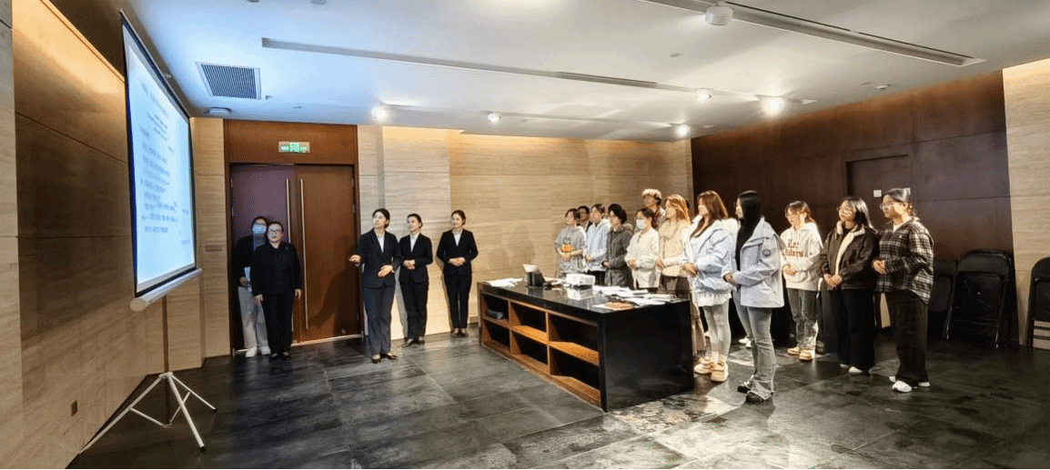 全体学生还在陈列馆专业人员的指导下,集中进行了系统的讲解员礼仪训练。培训内容涵盖理论讲解与实战两部分,有效提升了学生们在涉外接待与文化解说中的职业素养。