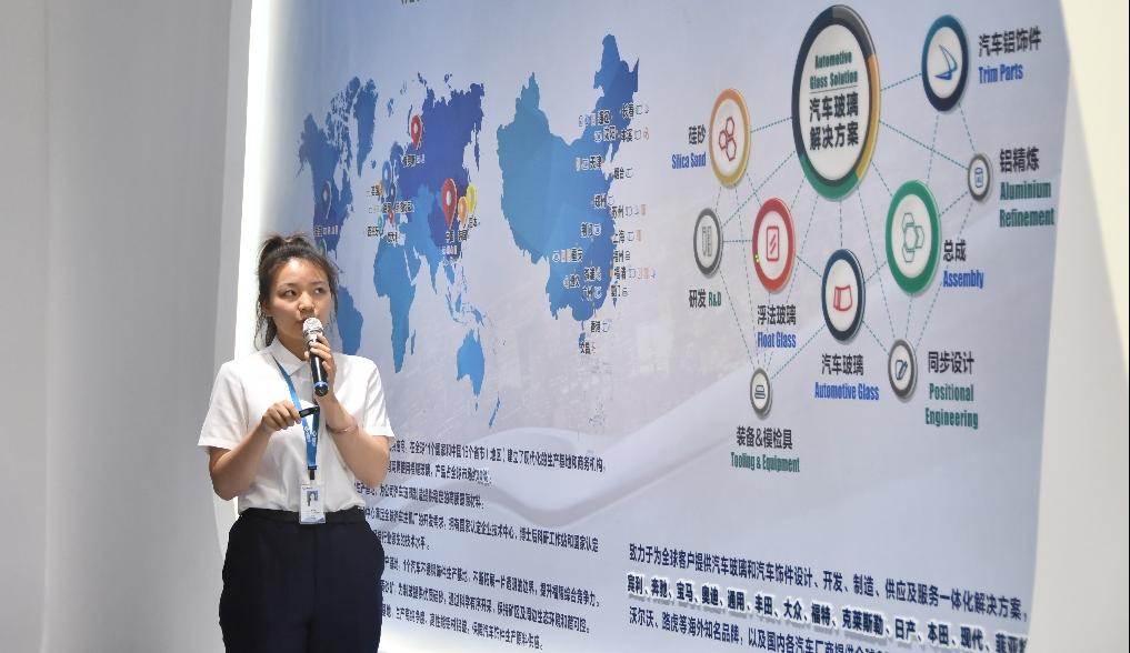 活动中,讲解员带领师生走进了福耀玻璃工程研究院的展厅,并介绍了福耀集团的生产宗旨、产品定位、生产范围以及发展历史、发展成就。随后,讲解员为我们展示了福耀集团顺应产品总成化趋势所生产的车架、车门、智能立柱、亮视板、隔热前挡、镀膜加热前挡、玻璃穹顶天窗等汽车配件以及应用于地铁列车的OLED车窗与能抗击400KM时速风阻的高铁组列车前挡玻璃等高精尖科技产品。最后,讲解员带领大家走进浮法玻璃的制造工厂,见证了一块又一块浮法玻璃从配比熔炼、冷却成型到切片分装、集装入库的全过程。