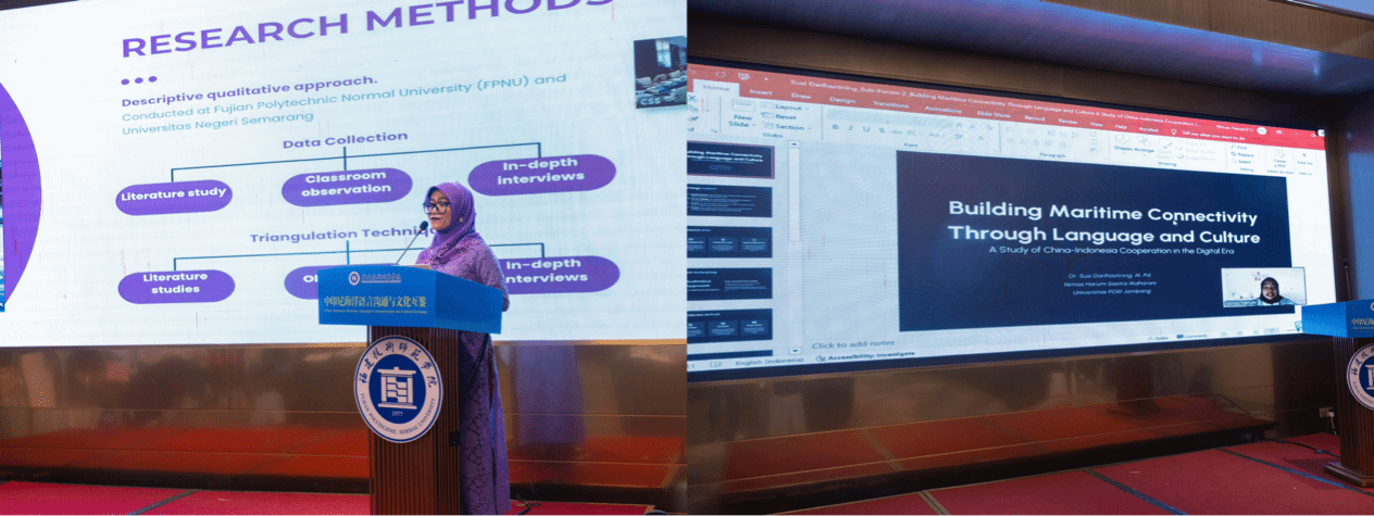 在第二阶段,中印尼海洋语言沟通和文化互鉴研讨视角进一步拓展,延伸至数字经济、语言教学、文化融合及旅游合作等前沿领域。与会专家围绕多个议题分享了具有启发性的研究成果,包括数字经济机制对印尼发展的经验与启示,海丝之路语言资源在印尼语教学中的融入路径、中华美食文化在印尼的在地化融合、汉语在印尼多元文化图景中的活力,以及中国茶文化在印尼本土化流变历程等精彩研究成果。印尼学者还从本土视角出发,探讨了地方语言文化的保护与传承策略,以及如何借助本土智慧赋能语言教学创新,为推动中印尼跨文化合作提供了宝贵的地方经验与崭新思路。