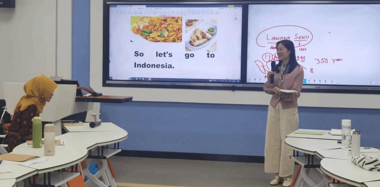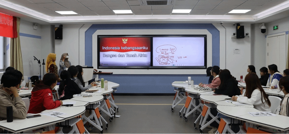 本场讲座瓦蒂博士以印尼分散的地理位置为切入点,从印尼各具特色的城市地标建筑、国旗、国徽、国歌以及建国五项基本原则等视角出发,指出印尼语在印尼民族统一进程中发挥着重要作用。同时,瓦蒂博士用精美的图片、有趣的视频、生动的现场舞蹈表演展现印尼民族习俗及风土人情,并剖析背后展现的文化内涵,获得与会师生的连声赞叹。互动交流环节中,与会师生就印尼语言及文化相关问题积极与瓦蒂博士交流探讨,现场气氛热烈。