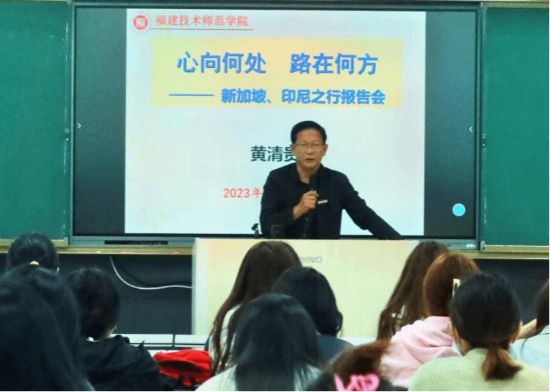 黄清贵院长生动讲述了赴新加坡、印尼访问交流的所见所闻,深情描述了海外侨胞心系桑梓、情牵家国的感人事迹,重点分享交流了到访交流高校的办学理念、相关学科专业建设经验、人才培养模式等情况。
