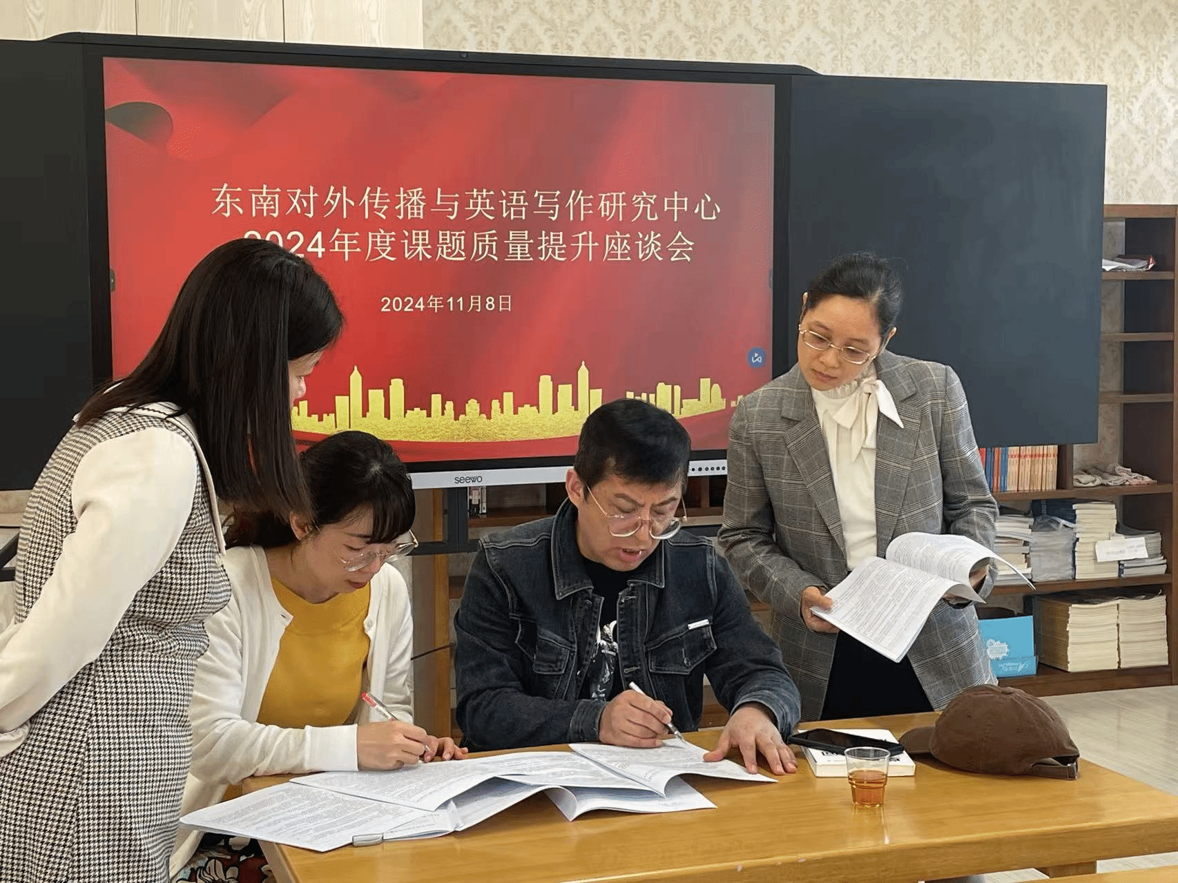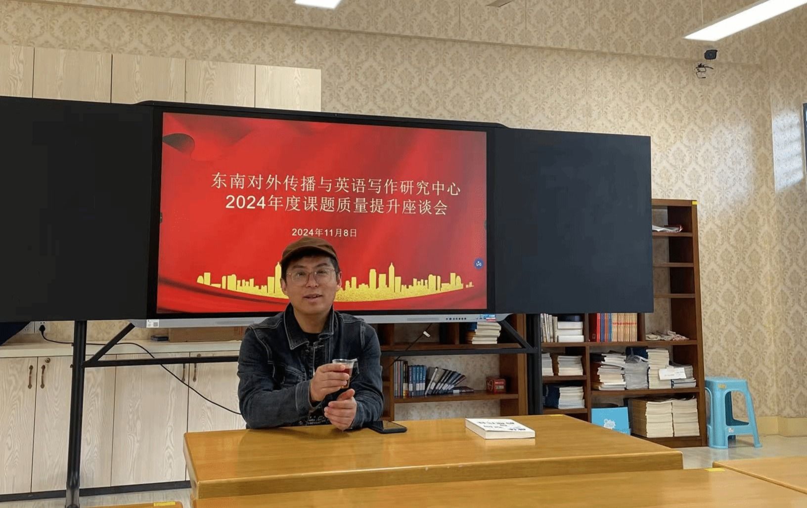 当日上午,在温馨的英美风情室内,丁礼明教授与2024年度东南对外传播与英语写作中心课题立项的成员们展开了一对一的深入学术辅导。丁教授以其深厚的学术造诣和独特的见解,为在场老师提供了高屋建瓴的指导和细致入微的分析。