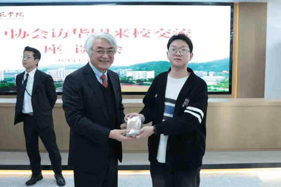 访华团副会长服部健治对校方的热情接待表示诚挚感谢,希望此次交流能够进一步增进中日友谊,加深双方理解。随后,双方围绕中日经济发展和两国文化交流的主题,就日语专业学生关心的AI时代的机遇与挑战以及AI在文创领域的应用、日本动漫文化、日本就业情况以及日本公司在招聘中看重的能力和品质等问题进行了深度交流与探讨。访华团各代表结合自身丰富的阅历和行业经验,为同学们提供了诸多宝贵建议和美好祝福。王慧杰老师对访问团一行的指导表示衷心感谢,表示此次交流学习受益匪浅,为日语及相关专业的人才培养打开了新思路,并希望同学们充分运用所学,在今后的学习生活中不断提升自我。