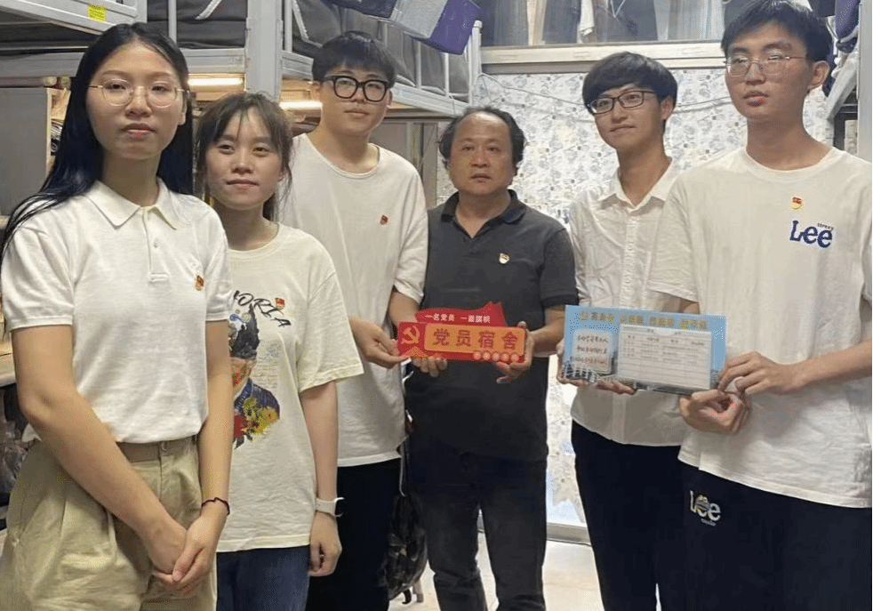 林书记带领学院政工干部深入学生党员宿舍,将党员宿舍牌交到各位党员的手中,并殷切叮嘱各位党员要时刻牢记共产党员身份,充分发挥先锋模范作用,要不断严格要求自己,自觉接受同学们的监督。林书记勉励全体学生党员要带头弘扬中华优秀传统文化,在文明宿舍创建、学风建设等方面积极发挥引领示范作用,营造“我是党员我带头”的浓厚氛围,带动身边同学养成良好的行为习惯。随后,领导老师与学生党员共同将“外国语学院党员宿舍”标识牌张贴到宿舍门口醒目位置。