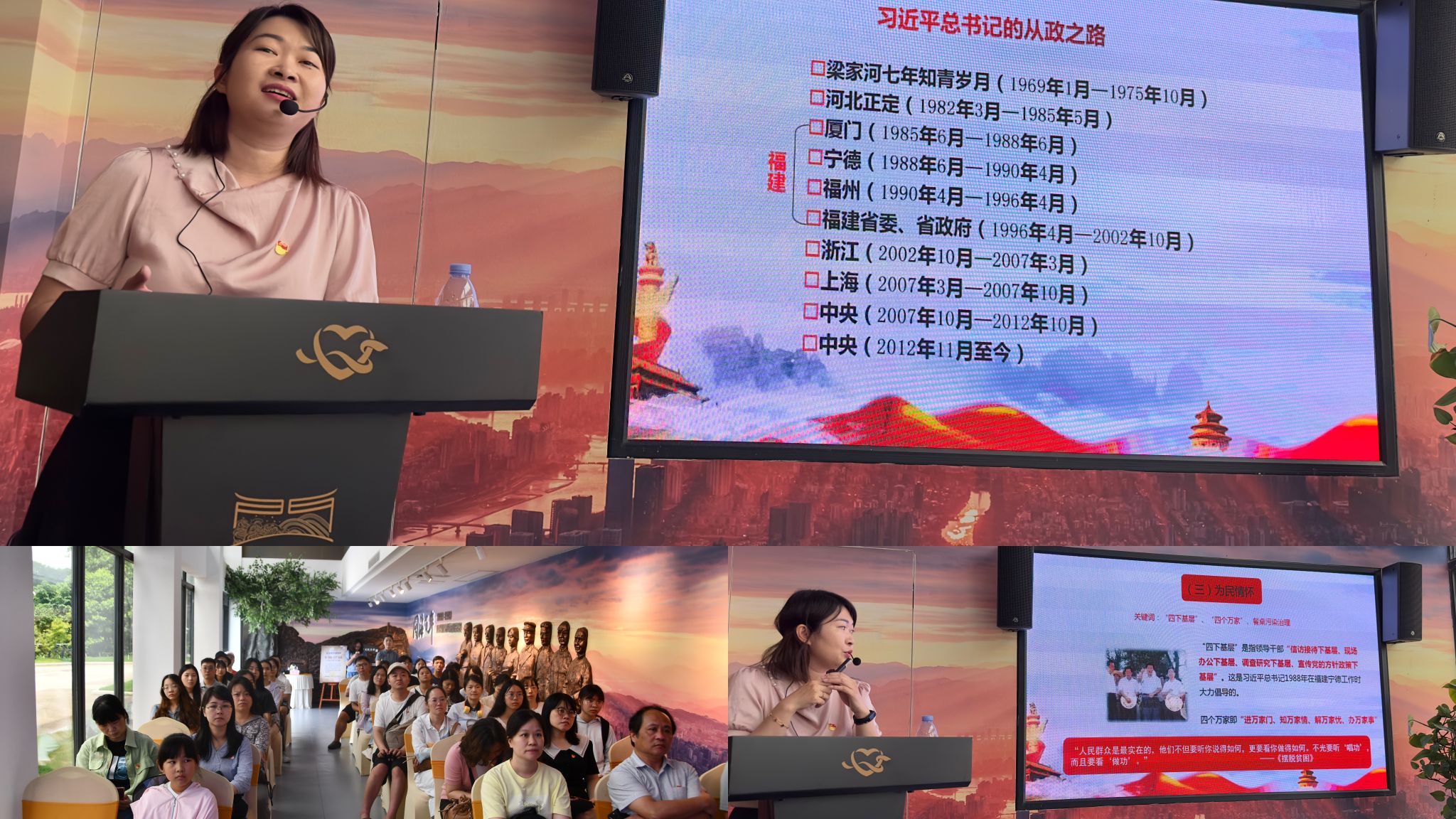 现场教学的最后,福建省委党校的张琦老师以《习近平新时代中国特色社会主义思想在福建的孕育和实践——深入学习贯彻党的二十大精神》为题,为大家讲授了一堂生动的微党课。张琦老师以习近平总书记曲折而坚定的入党之路为切入点,带领大家重温了习近平总书记在福建工作期间所倡导的执政理念和重大实践,深切感悟习近平总书记的为民情怀。张琦老师的党课让这场主题教育党日活动更具“福建味道”,进一步引导党员同志把坚定拥护“两个确立”、坚决做到“两个维护”落到实处,凝聚起奋进新征程的磅礴力量。