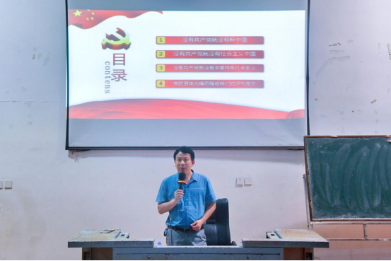 杨建辉教授围绕“没有共产党就没有新中国”、“没有共产党就没有社会主义中国”、“没有共产党就没有中国特色社会主义”、“党的百年光辉历程带给我们的深刻启示”四个部分展开详细阐述,并结合党不同时期的重大历史事件带领同学们重温党从无到有、从弱到强的不平凡发展历程,引导同学们深刻认识红色政权来之不易、新中国来之不易、中国特色社会主义来之不易,进而从党史里赓续红色传统,在现实中传承红色基因。