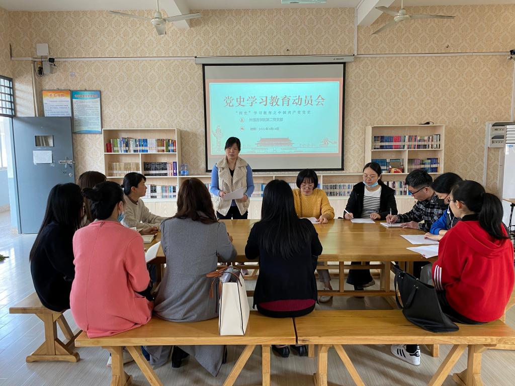 3月14日下午,外国语学院第二党支部在科学楼604开展党史学习教育第一次专题学习。党支部书记肖晶主持学习活动并作了交流发言,支部全体党员参加了学习。
