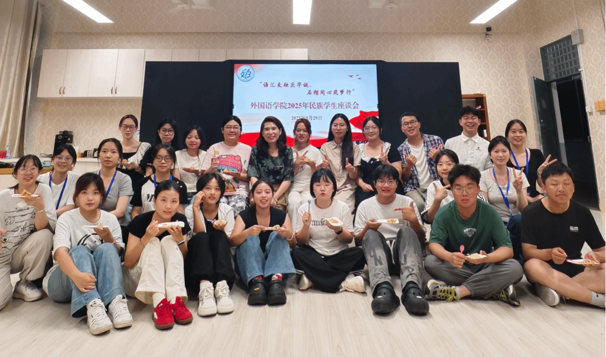 9月29日晚,我院在科学楼604举办了2025年“语汇交融庆华诞 石榴同心筑梦行”民族学生座谈会。学院党委书记陈娟珍、团委副书记吴钦慧、各年级辅导员以及来自不同民族的学生代表参加了活动。