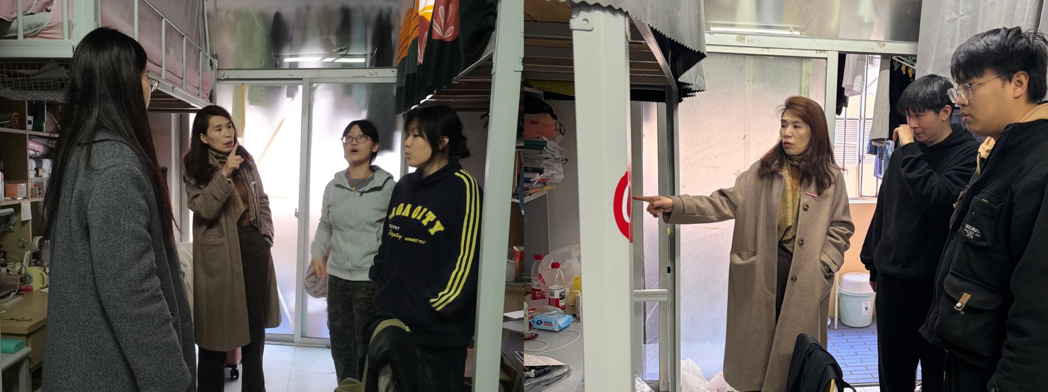 陈娟珍与同学们亲切交流,关心大家的生活与学习状况,并叮嘱同学们要牢固树立安全意识,自觉遵守宿舍管理规定,共同维护安全、整洁、和谐的居住环境。