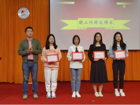 会上,团委书记朱宇航老师公布了2020-2021学年两委成员名单,之后各部门进行交接仪式并授予工作牌及聘书。