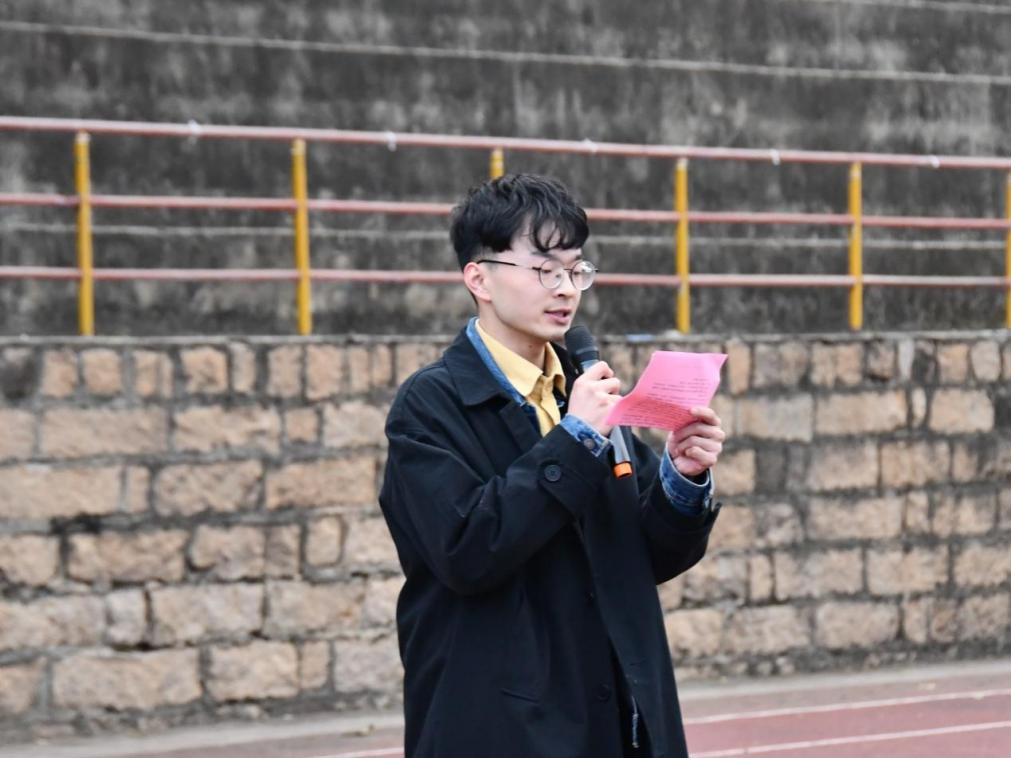 接着,学生代表廖心翔向全院同学发出倡议,希望全体同学能加强政治学习,勇担时代责任,听党话、跟党走,努力学好专业知识,不断提高综合素质,做一名政治上有方向、发展上有本事、责任上有担当、文化上有内涵的新时代的“四有青年”。