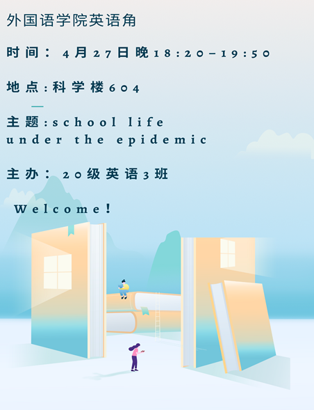 为丰富我院师生的校园生活,提高同学们的英语运用能力和交往沟通能力,我院于4月27日晚在科学楼604开展了主题为“school life under the epidemic”的英语角活动。我院外教Davin以及20级英语3班全体同学参与了此次活动。