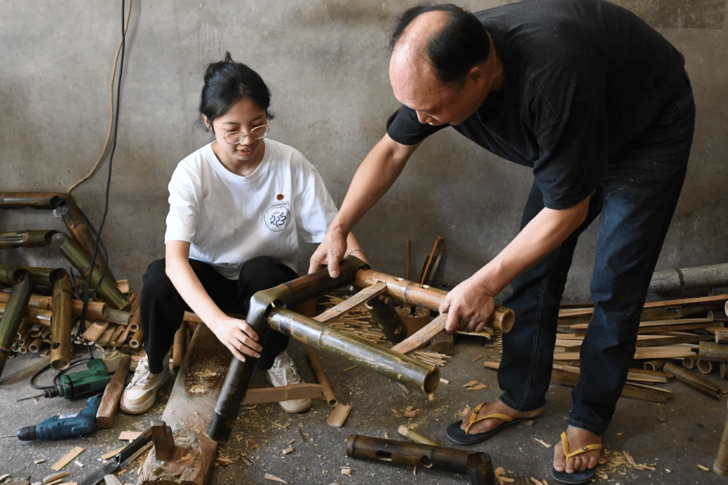 竹编工艺在中国已有数千年的历史。在福清东张镇政府附近的沿街老商铺里的各种精美竹器里,实践队深深感受到了无数竹编艺的心血和对生活的那份热爱。通过观摩、学习竹编制作过程,实践队员深入了解了竹编工艺的历史渊源和文化背景。