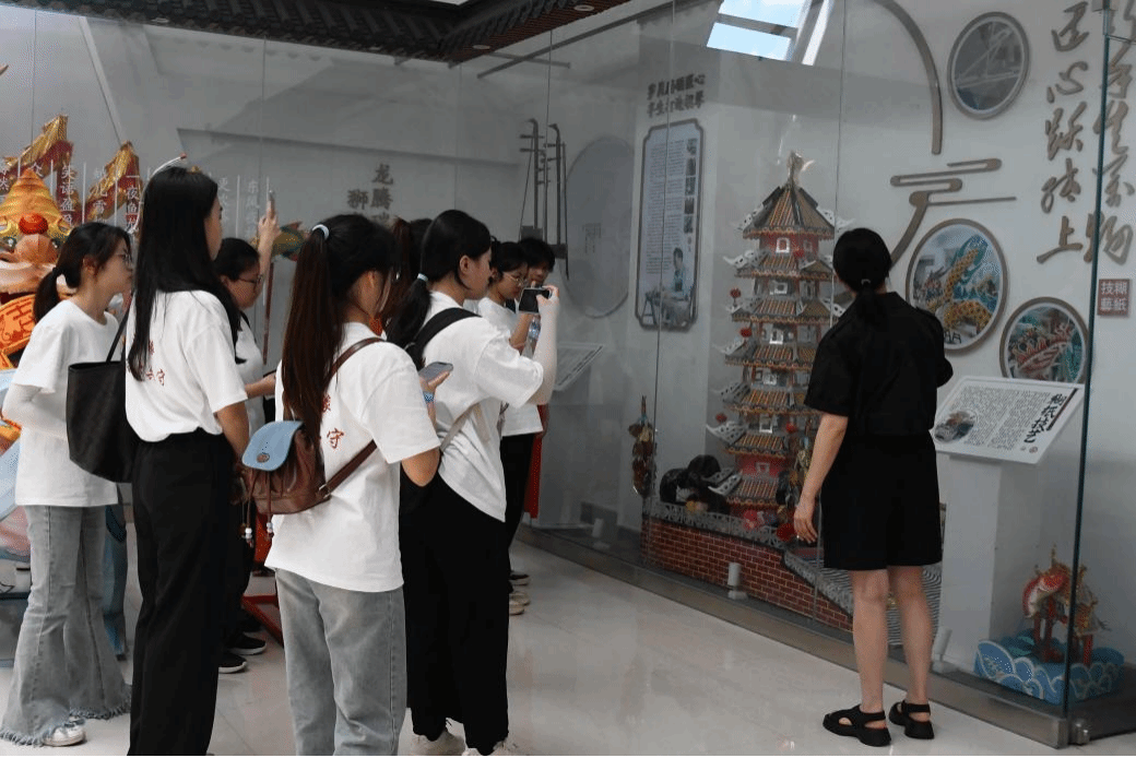 福州非物质文化遗产展示馆丰富的展品如同打开的文化宝库,让实践队成员领略了各地非遗项目的独特魅力。在这里,文化的交流与融合得以生动展现。