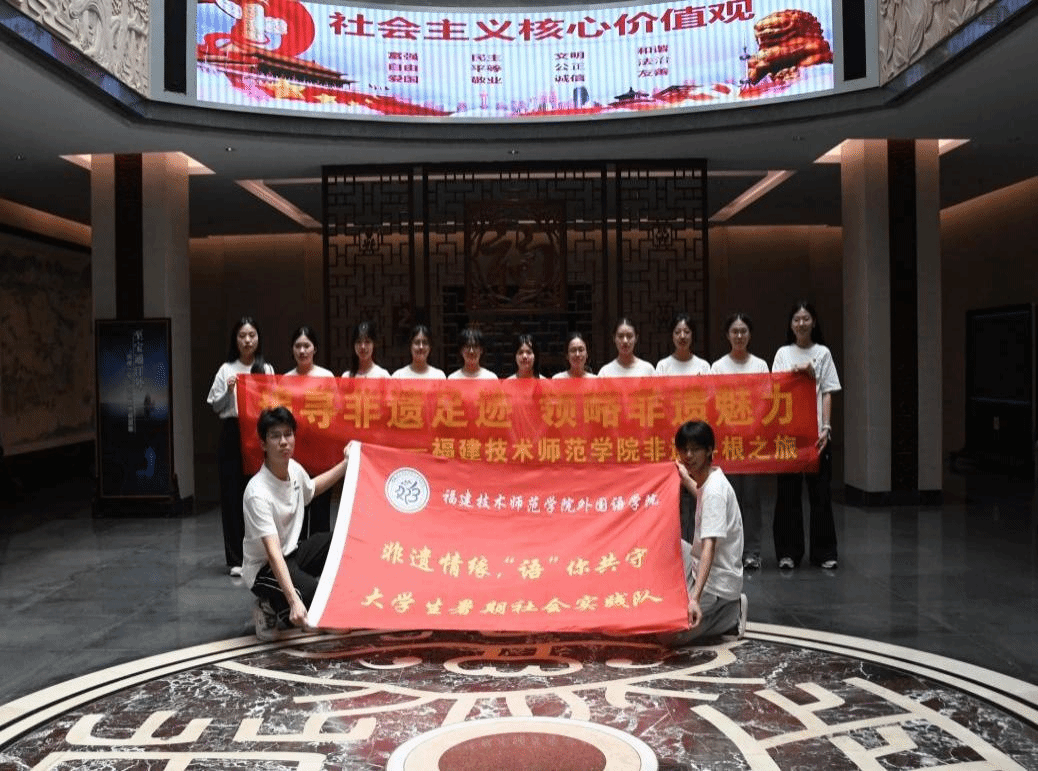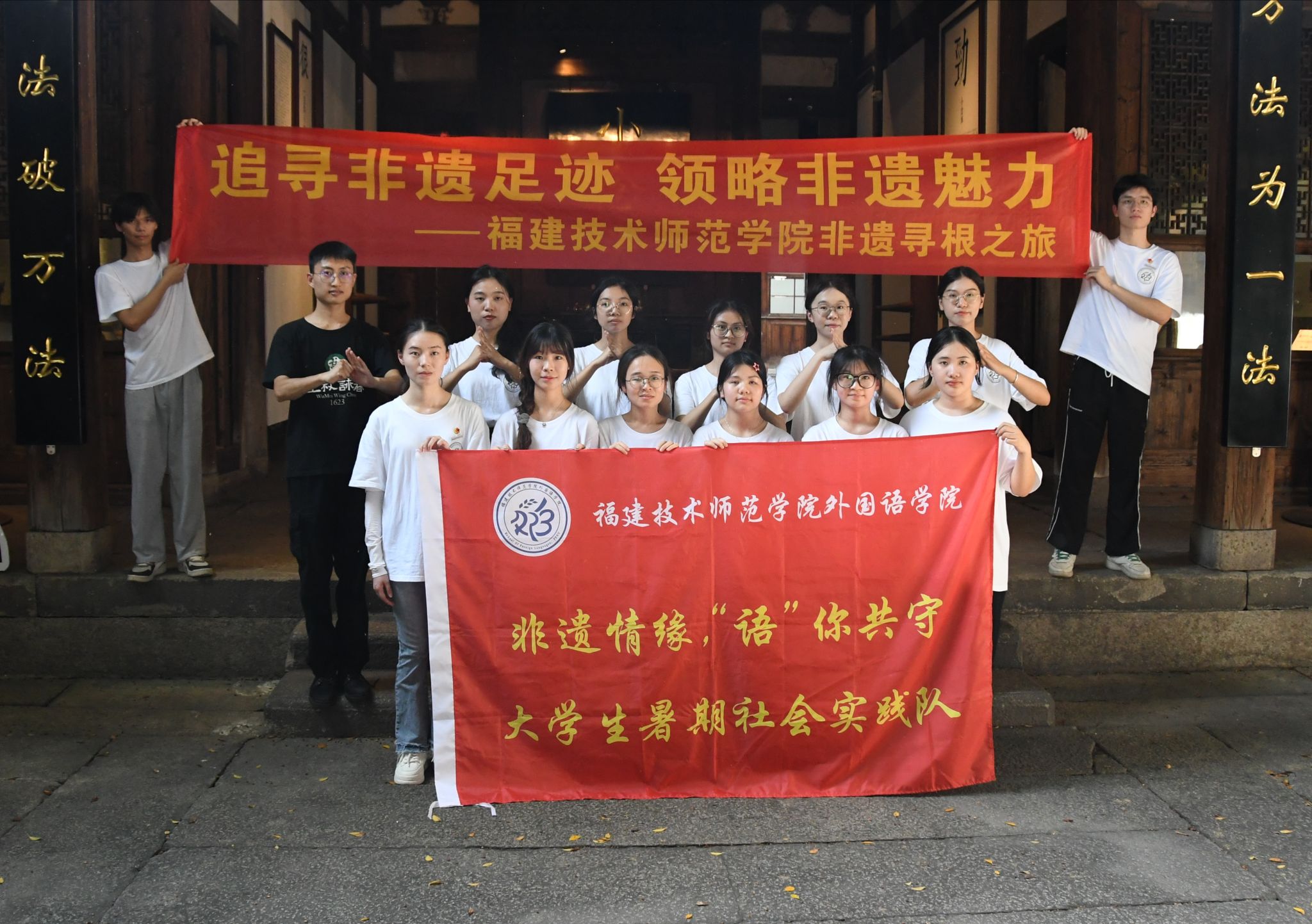 为深入学习宣传贯彻习近平文化思想,认真贯彻落实习近平总书记关于非物质文化遗产保护传承的重要指示批示精神,领会“两个结合”的重大意义,引导和帮助青年学生在社会课堂中受教育、长才干、作贡献,争做有理想、敢担当、能吃苦、肯奋斗的新时代好青年。日前,福建技术师范学院外国语学院“非遗情缘,‘语’你共守”社会实践队开启“探寻非遗根,共筑同心梦”非遗寻根之旅。实践活动先后在福清和福州两地开展,旨在以语言为桥,以文化为舟,跨越时空界限,探寻特色非遗文化、感悟非遗精神、讲好非遗故事。