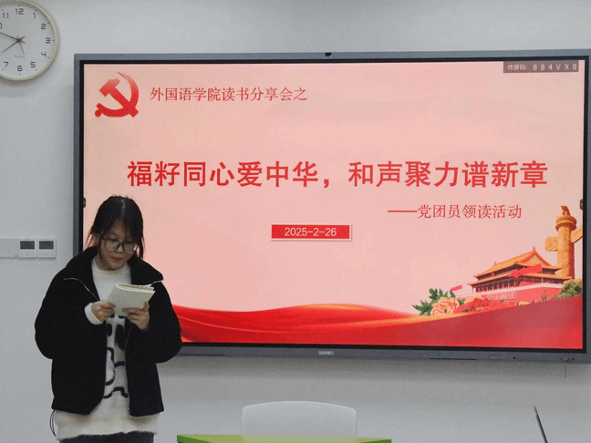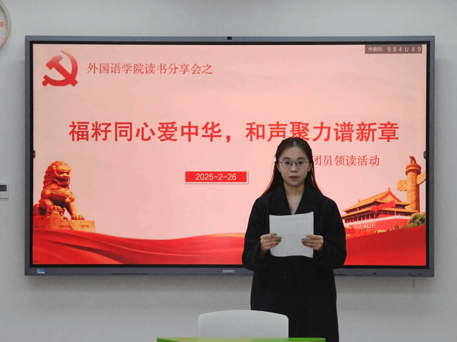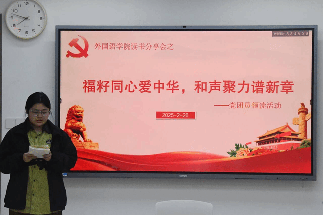 2月27日晚,我院第四党支部在“一站式”学生综合服务中心开展“福籽同心爱中华,和声聚力谱新章”党团员领读活动。第四党支部全体党员及2023级商务英语专业团员代表参加了此次活动。
