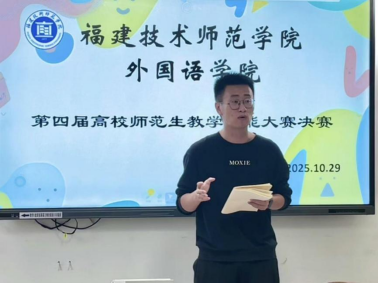 蒋敦对选手们的表现作了专业点评。他充分肯定了同学在情境创设与专业功底方面的亮点,并围绕真实场景导入、教学节奏把控等方面提出宝贵建议,为同学们未来教学实践的优化与提升指明了方向。
