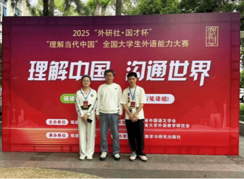 2025“外研社·国才杯”“理解当代中国”全国大学生外语能力大赛福建赛区选拔赛(英语赛道综合能力组/笔译组)于11月1-2日在福建师范大学外国语学院举行,我院2024级英语(专升本)专业学生郑健晔荣获笔译组二等奖,指导老师为林丽霞、俞丹;2023级英语专业学生甘晓彤荣获综合组三等奖,指导教师为徐勤良、颜碧洪。