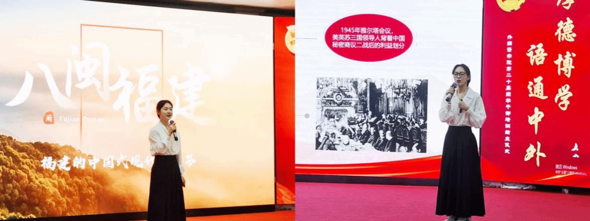 活动还进行了微团课展演,陈亦乔、林倍好两位同学分别围绕“福建与中国式现代化”与《青衿志拓现代化 译笔传声保外交》主题作了生动展示,展现了外语学子将个人成长融入时代发展的担当。