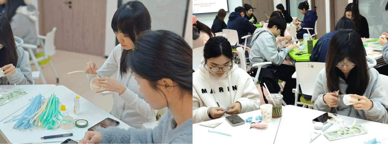 活动现场气氛热烈,创意无限。同学们以扭扭棒为主要材料,通过裁剪、缠绕、塑形等步骤,将一根根彩色绒条制作成花瓣、叶片和枝干,最终组合成一株株形态各异的郁金香盆栽。