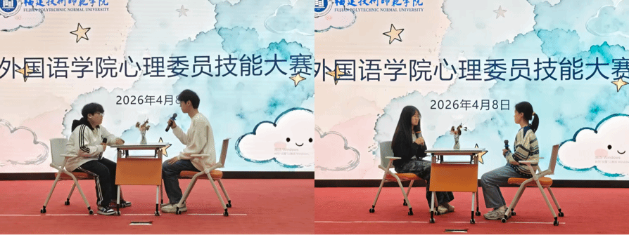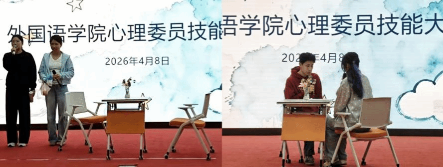 为普及心理健康知识,提升学生心理健康素养,4月8日下午,我院于科学楼金泰学术报告厅举办外国语学院第一届心理委员技能大赛。我院团委副书记吴钦慧,辅导员李冬静、刘昱岑,实践部部长林苏婷、副部长黄昕悦担任评委。