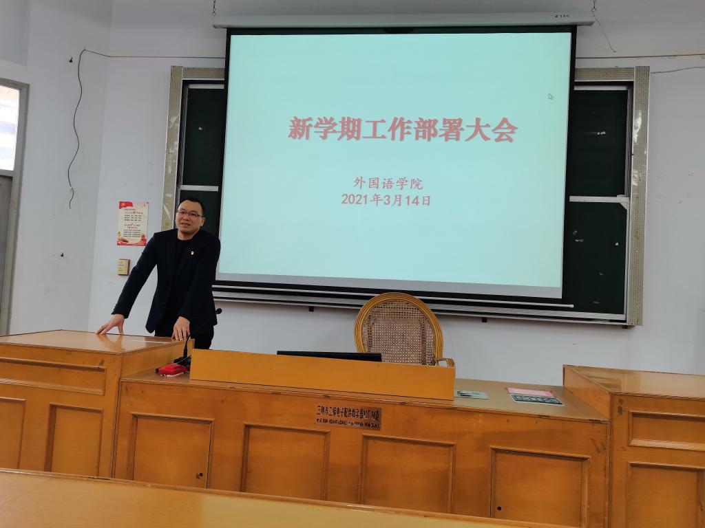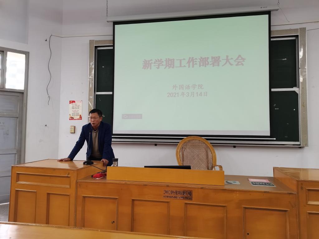 3月14日下午,我院在教学楼201召开新学期工作部署大会,学院党总支林钦松书记、黄清贵院长以及全体教职工参加了会议。