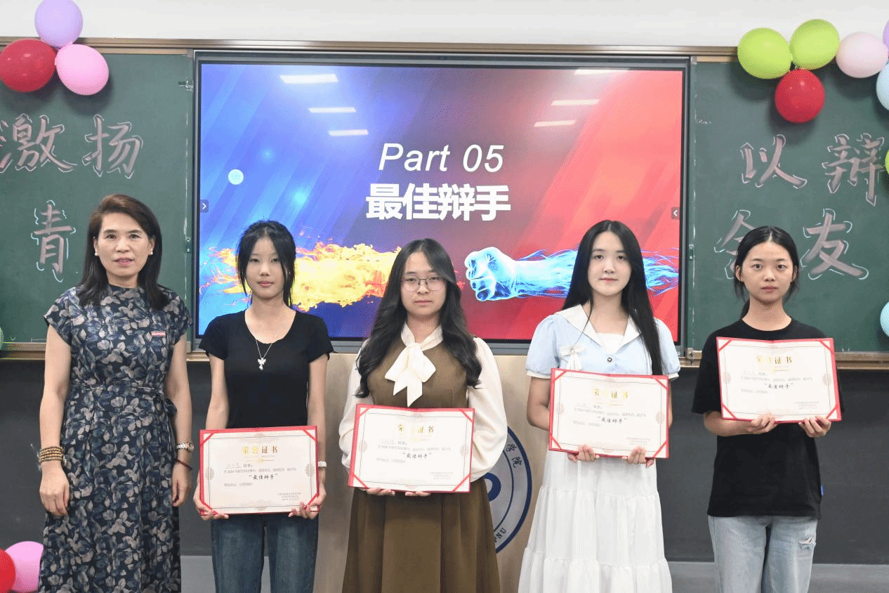 经过激烈角逐,“芭比公主队”荣获本次新生辩论赛“优秀团队”的称号,张楠、陈佳慧、徐婷婷、曾佳怡同学荣获得“最佳辩手”称号。