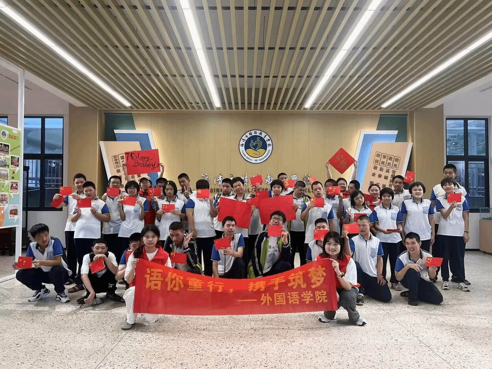 为庆祝新中国成立七十五周年,我院于9月25日下午赴福清市特殊教育学校开展“语”你童行,携手筑梦——“守护未来”爱心支教志愿活动,用爱心呵护童心,助力特殊儿童健康成长。
