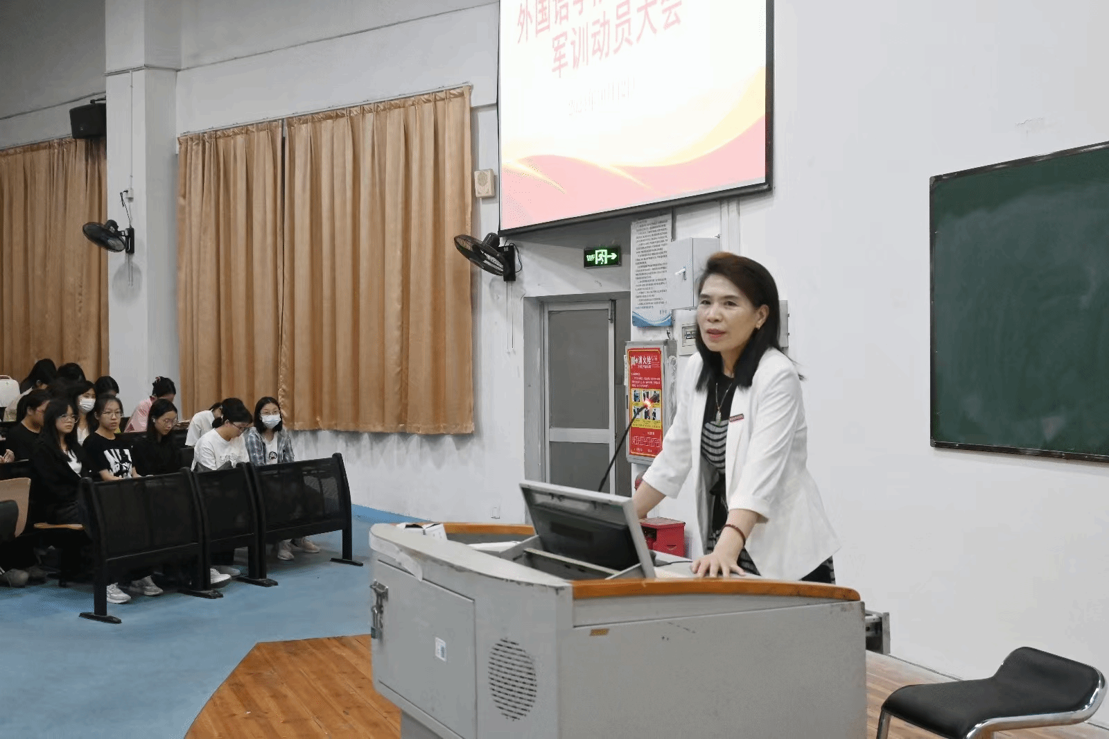 为切实加强国防教育,增强同学们的国防意识和组织纪律性,厚植爱国情怀,锤炼学生意志,10月12日晚,我院于向高园报告厅(三)召开2024级新生军训动员大会,院党委副书记(主持工作)陈娟珍作动员讲话。动员会由2024级辅导员吴钦慧主持,2024级全体新生参加。