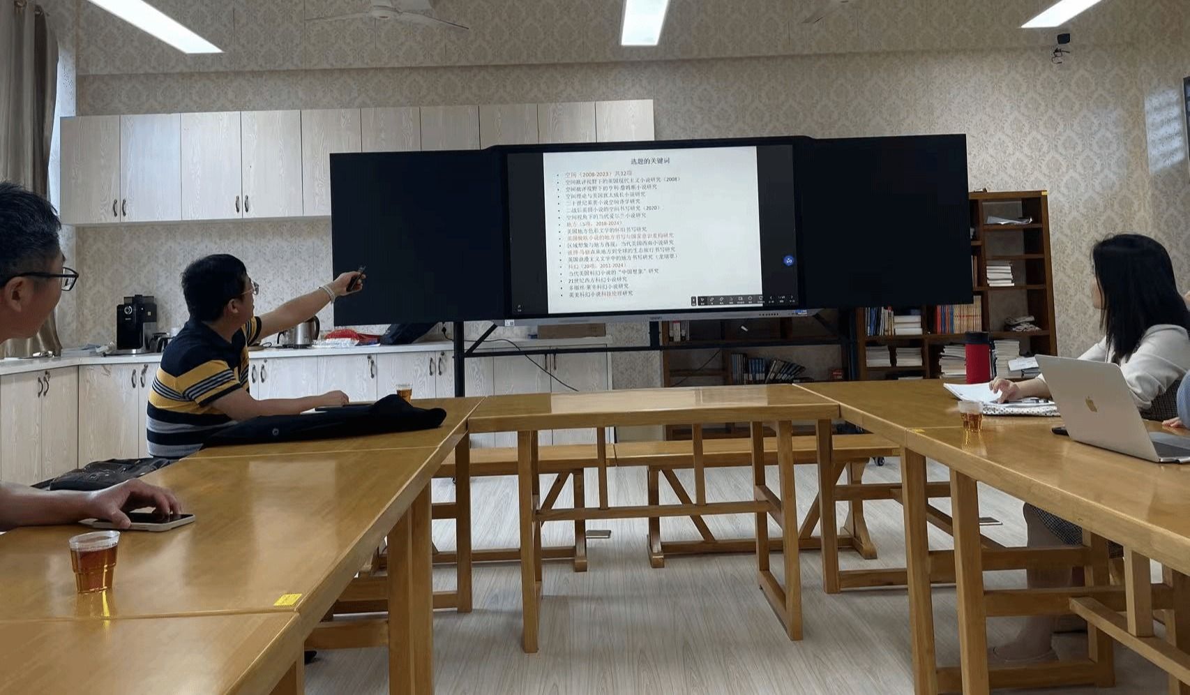 当日上午,在温馨的英美风情室内,丁礼明教授与2024年度东南对外传播与英语写作中心课题立项的成员们展开了一对一的深入学术辅导。丁教授以其深厚的学术造诣和独特的见解,为在场老师提供了高屋建瓴的指导和细致入微的分析。