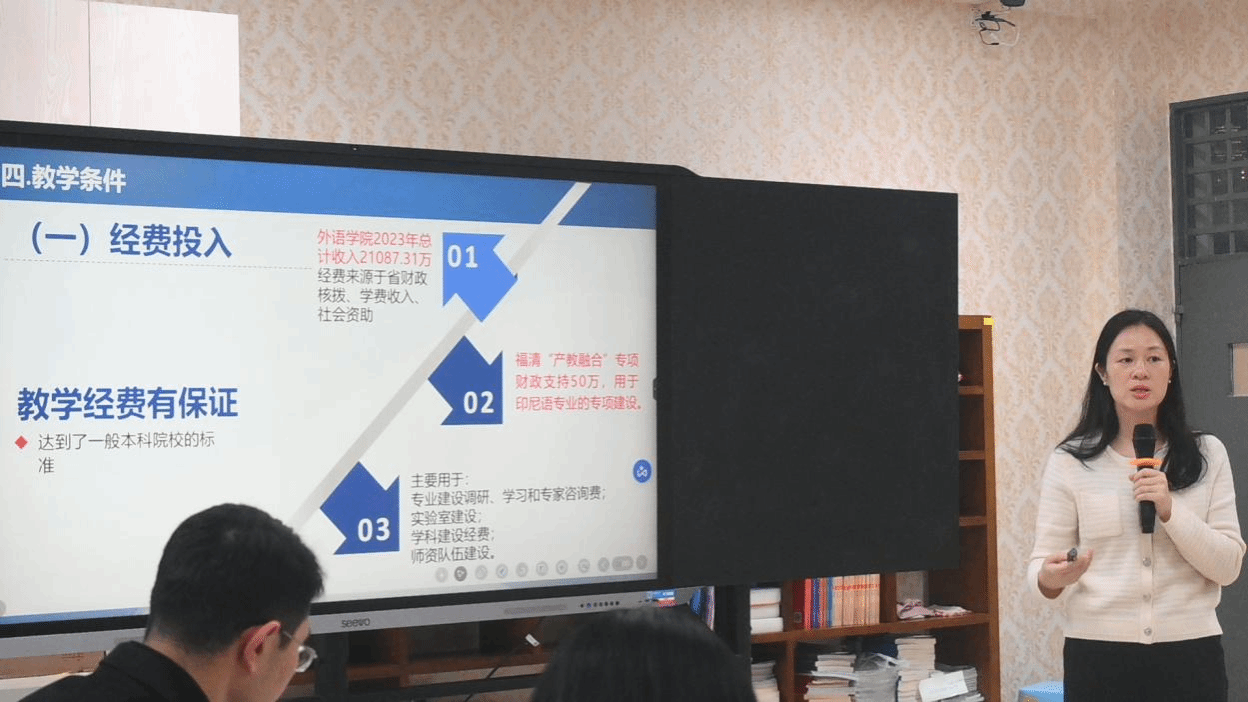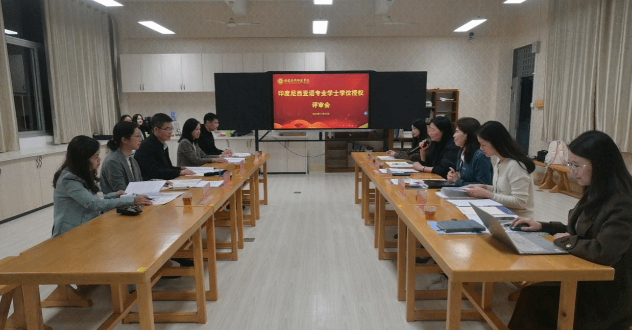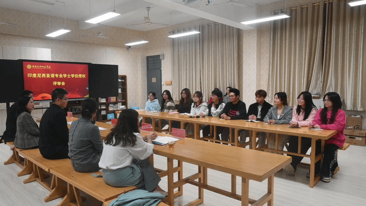 会上,依据《福建省普通高等学校学士学位授予专业评审指标体系》相关文件要求,专家组认真审阅了印度尼西亚语专业学士学位申请简况表、自评报告及相关支撑材料,听取专业建设与办学情况工作汇报,并分别与学院领导班子、教师代表和学生代表开展座谈。专家组还实地考察了语言实验室、语言教学设备和相关软件,查阅课程档案、试卷材料及教学管理制度汇编等资料。专家组充分肯定了我院印度尼西亚语专业建设所取得的成绩,同时积极就强化师资队伍建设、加强现有师资培养、提升科研产出、加强特色教材建设、优化课程体系、扩大国际交流与合作等提出了指导性意见建议。