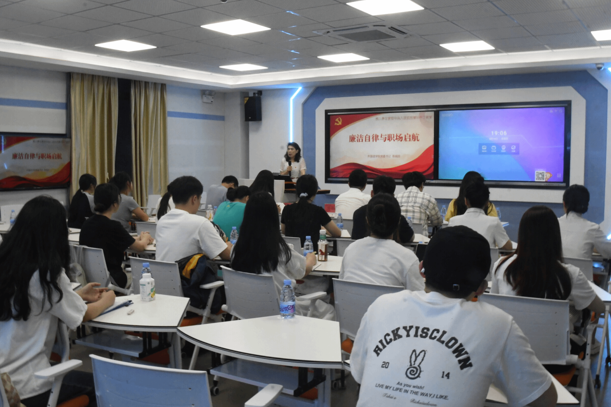 会上,陈娟珍为全体毕业生党员讲授《廉洁自律与职场启航》专题党课,紧扣深入贯彻中央八项规定精神学习教育,结合典型案例,从铭记身份、敬畏纪律、践行担当三方面深入剖析,并勉励毕业生党员离校不离党,以专业立身、以廉洁立信、以奉献立行,彰显新时代青年党员担当。