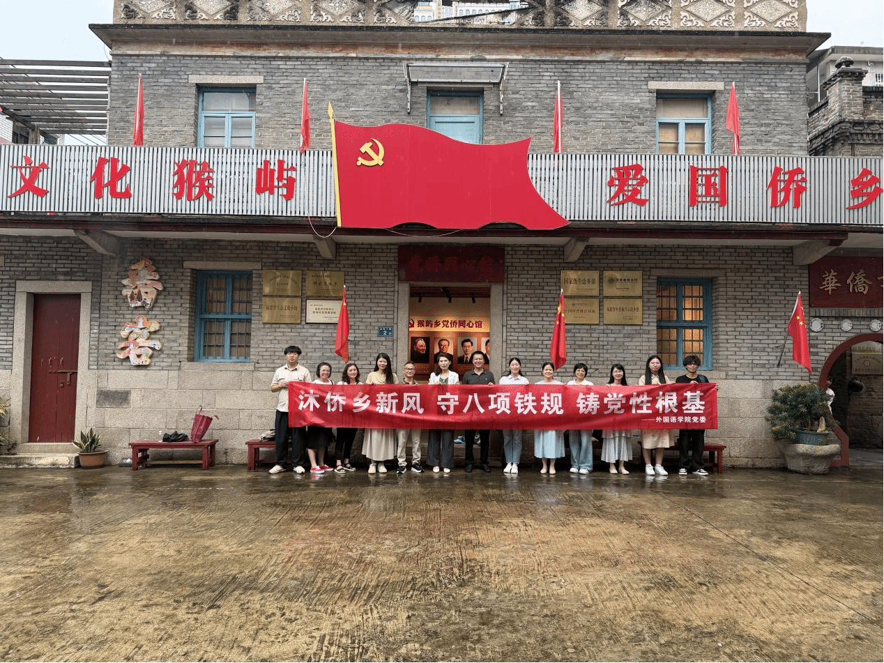 为扎实推进深入贯彻中央八项规定精神学习教育,进一步提升党员党性修养,2025年7月17日下午,外国语学院党委组织在融党员前往长乐区猴屿乡开展“沐侨乡新风 守八项铁规 铸党性根基”主题实践活动。